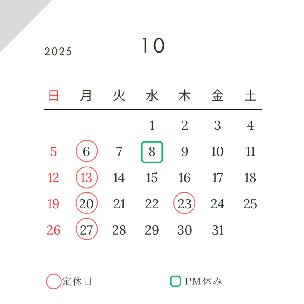 ※午前中(9:00〜13:00)と土日は早めに埋まりやすい為、ご希望の方は余裕を持ってご予約下さい。