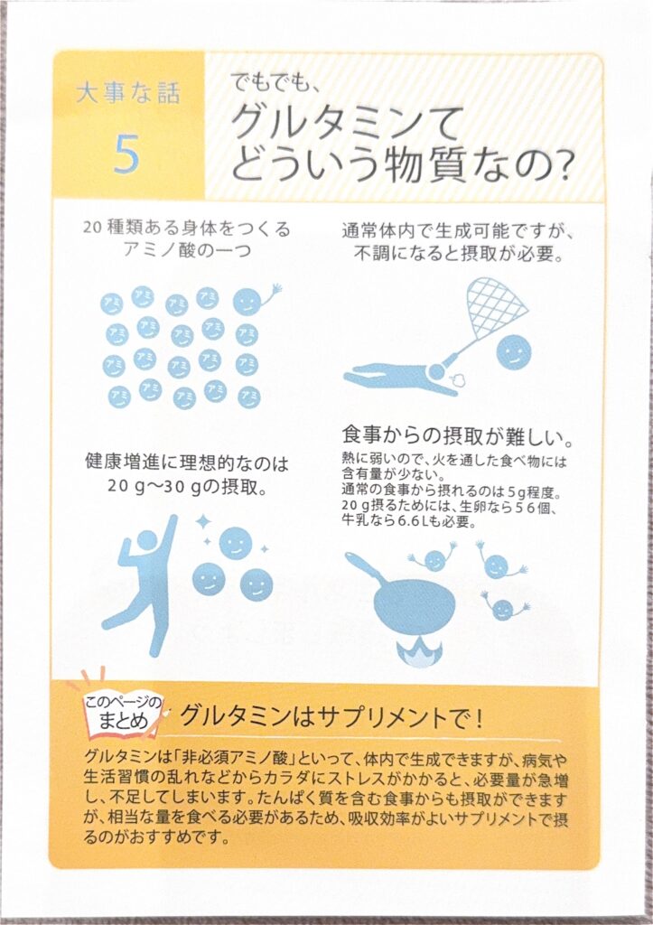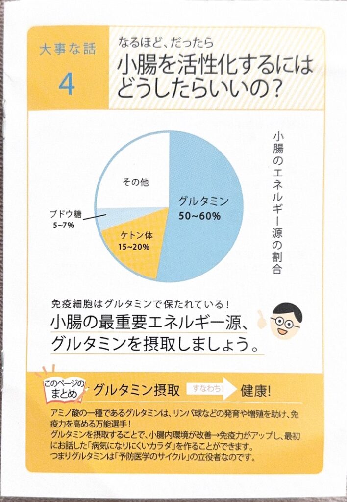 そして、その小腸の細胞が活動するために欠かせない主要なエネルギー源が**「グルタミン」**というアミノ酸です。